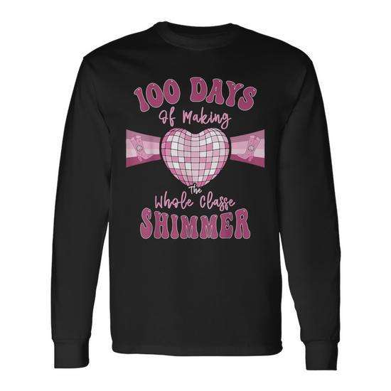 T-shirt promozionale a maniche lunghe con cuore disco Groovy, stile scintillante per 100 giorni di divertimento per tutta la classe