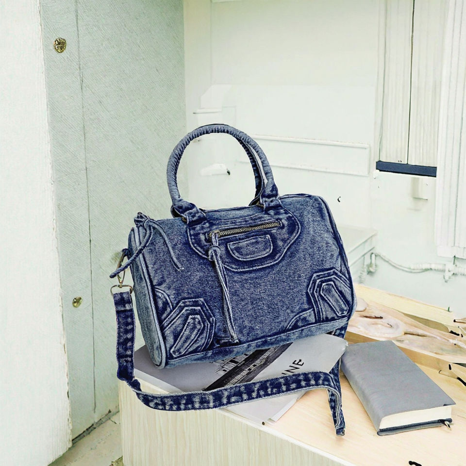 Borsa a tracolla a tracolla portatile Vintage di grande capacità con cerniera in Denim