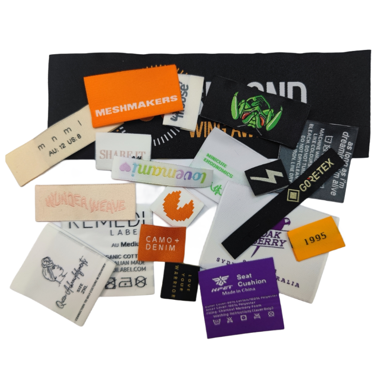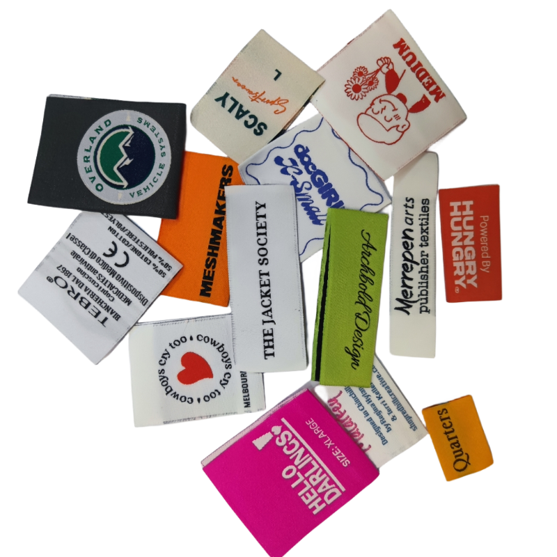 Prodotti promozionali etichetta etichetta per Tote cappello a secchiello etichetta in tessuto personalizzato rosa ferro su etichetta tessuta