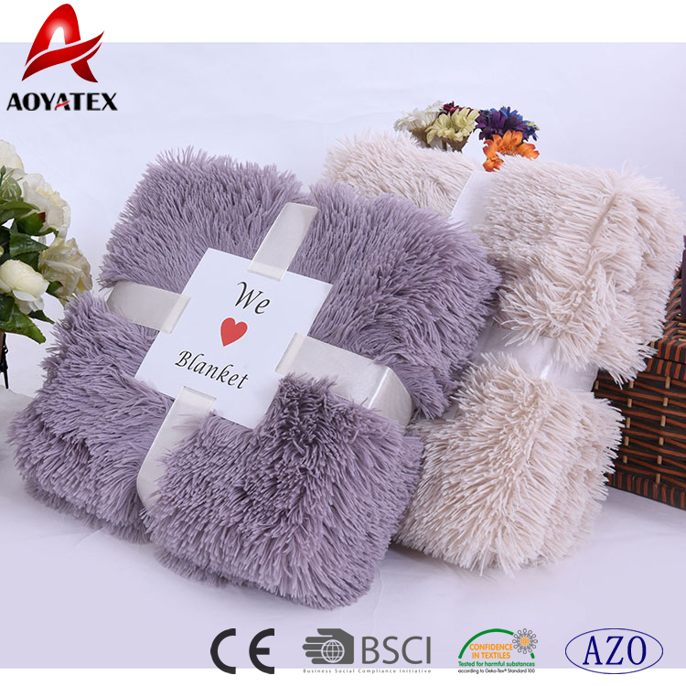 promotional super soft pv fleece long pile fake fur plush blanket