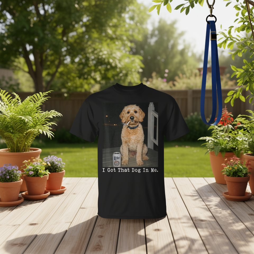 T-shirt promozionale con il meme 'I Got That Dog in Me' Golden Doodle per amanti e proprietari di cani