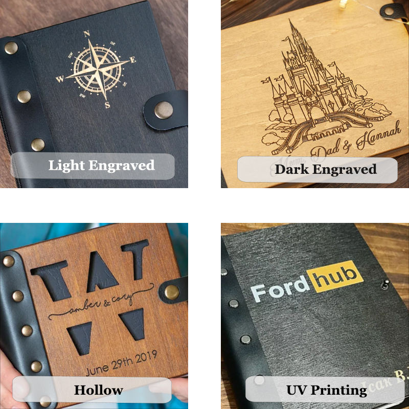 Regalo promozionale per celebrazione del libro di nozze in legno con testo inciso su misura A6 libri per gli ospiti
