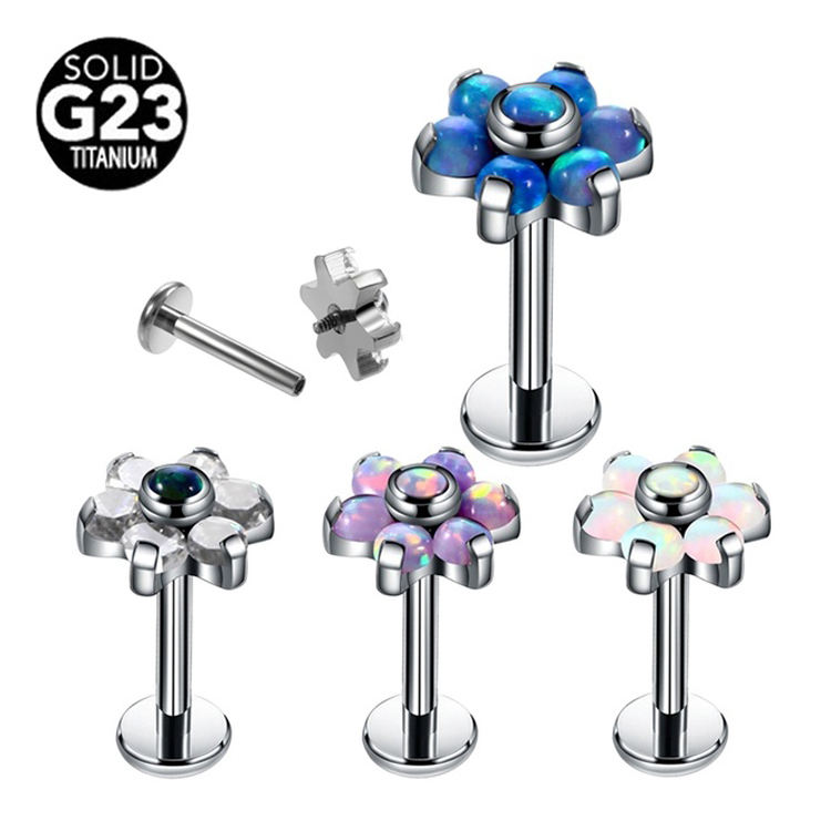 Prong Set G23 Titanio Opale Anelli Del Fiore Interno Monroe Labret Filettato per Tragus Helix Cartilagine