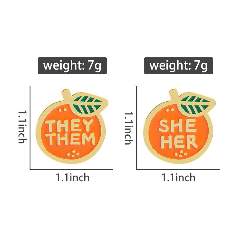 Pronoun Orange Enamel Pins They Them She Her Any Pronouns Brooch Lapel Badge Jewelry Accessories Gifts Wholesale