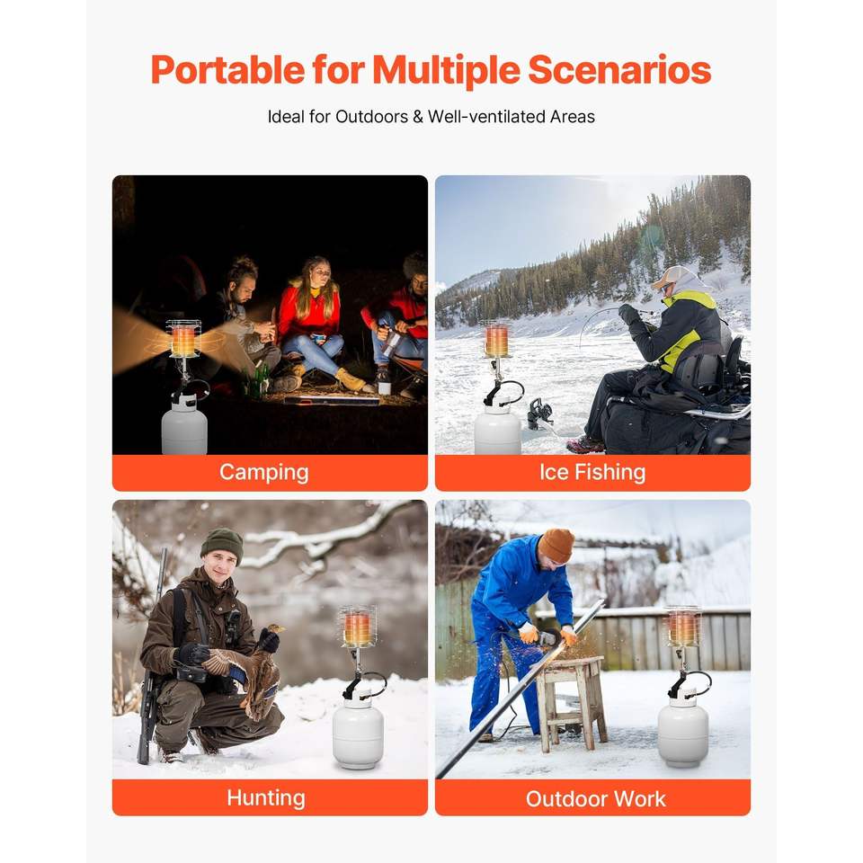 Riscaldatore a Gas Propano con 42000 BTU, Riscaldamento Rapido a 360 Gradi, Regolazione Graduale della Temperatura