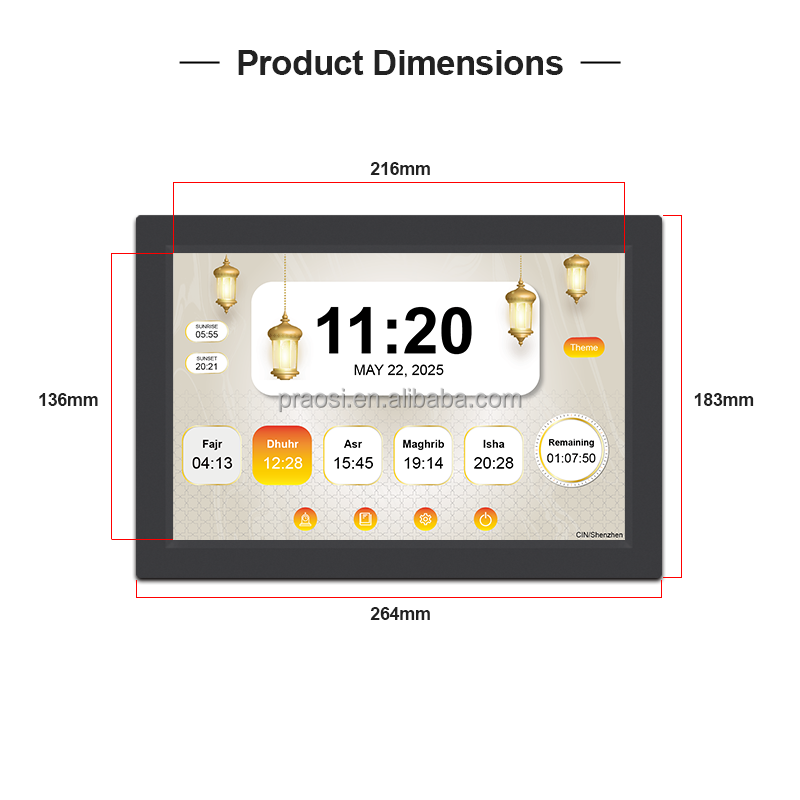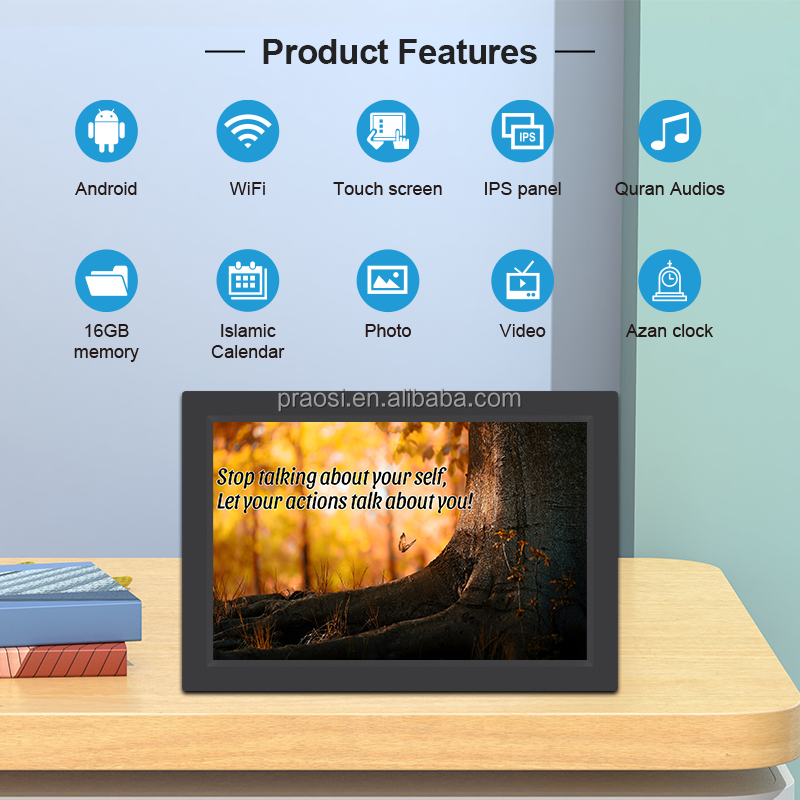 Pro 10 "orologio digitale Azan WiFi Touch Screen in tutto il mondo tempi di preghiera islamico Halal Muslim Duas Dhikr Hadith sura del giorno