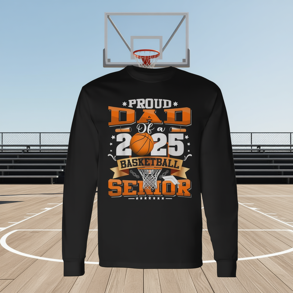 Orgoglioso papà di un laureato in basket senior del 2025, maglietta a maniche lunghe