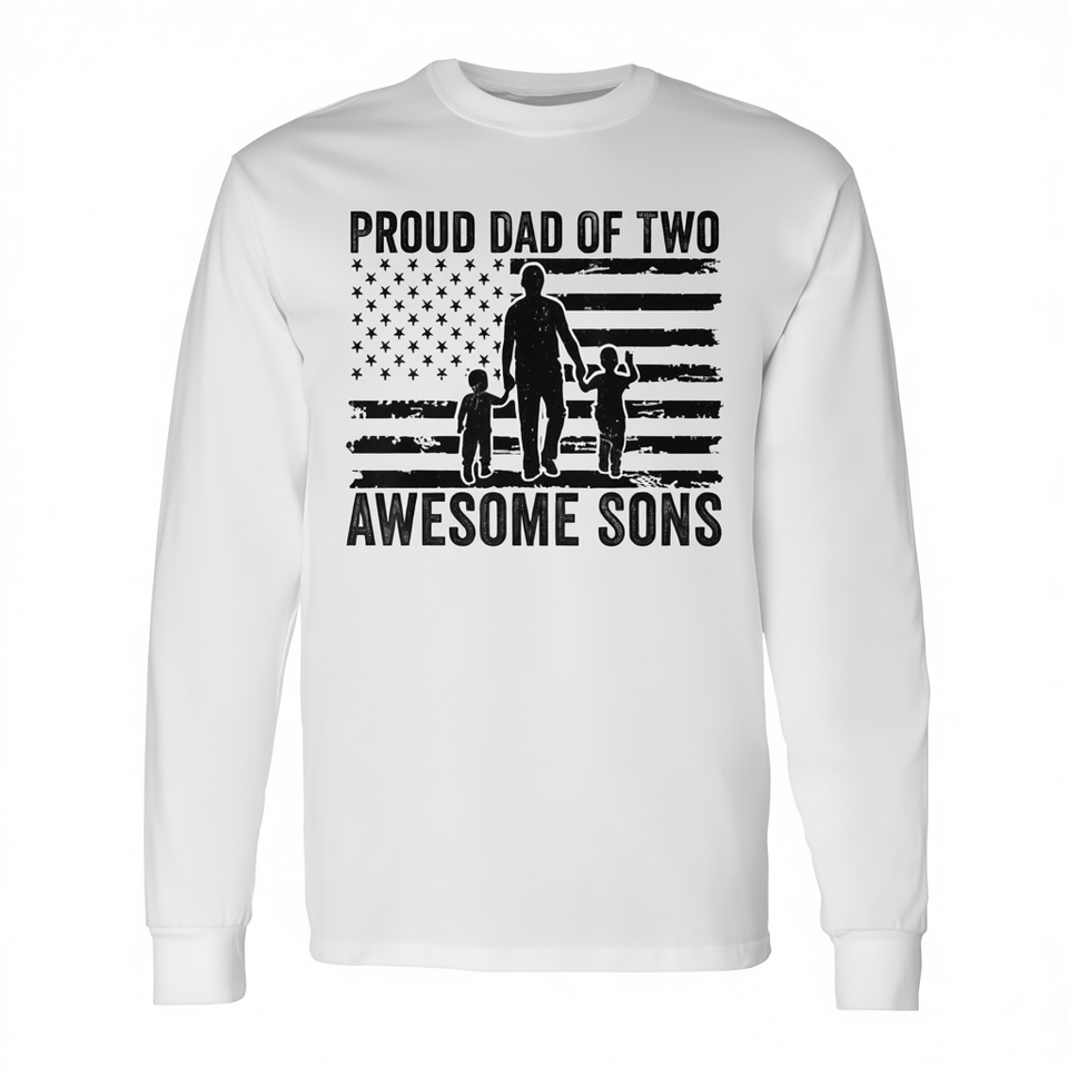 Orgoglioso papà di due figli fantastici, maglietta a maniche lunghe per papà con figli, abbigliamento coordinato per la famiglia