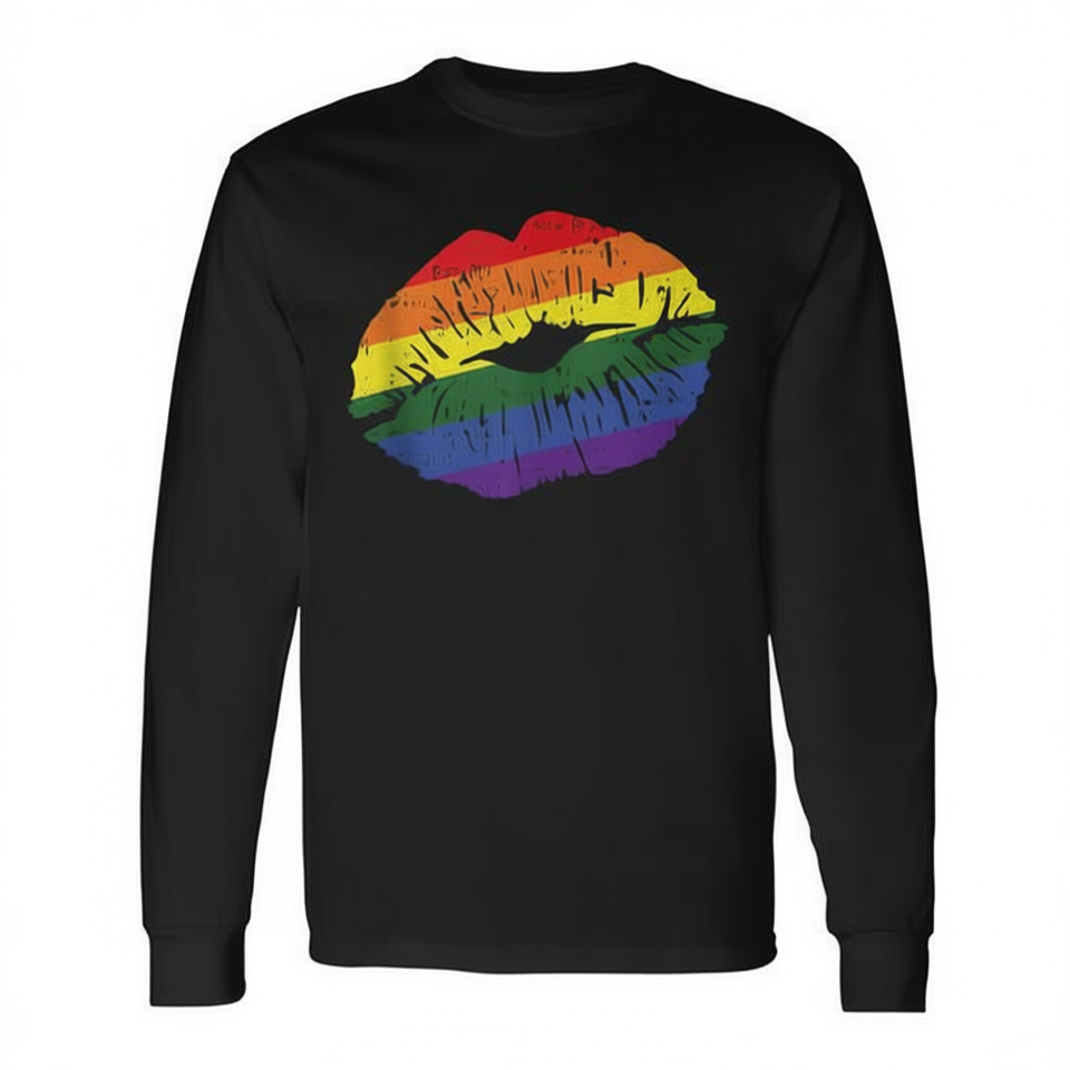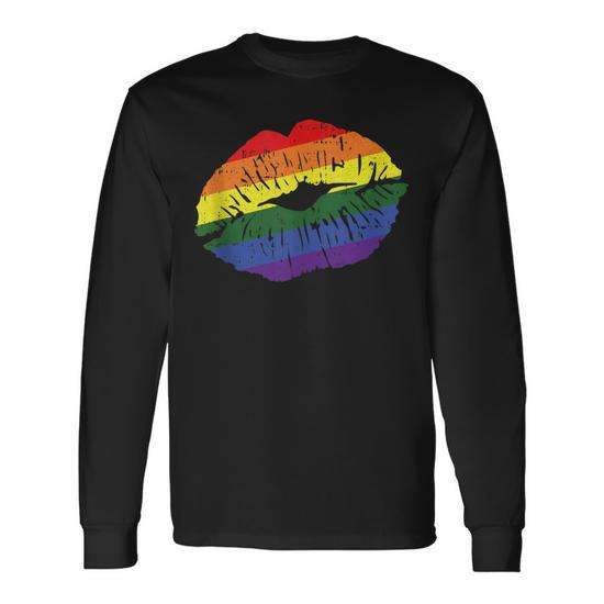 Maglietta a maniche lunghe e canotta compressa con bandiera dell'orgoglio gay, labbra sexy e arcobaleno, per l'orgoglio LGBT-Q, per bambini
