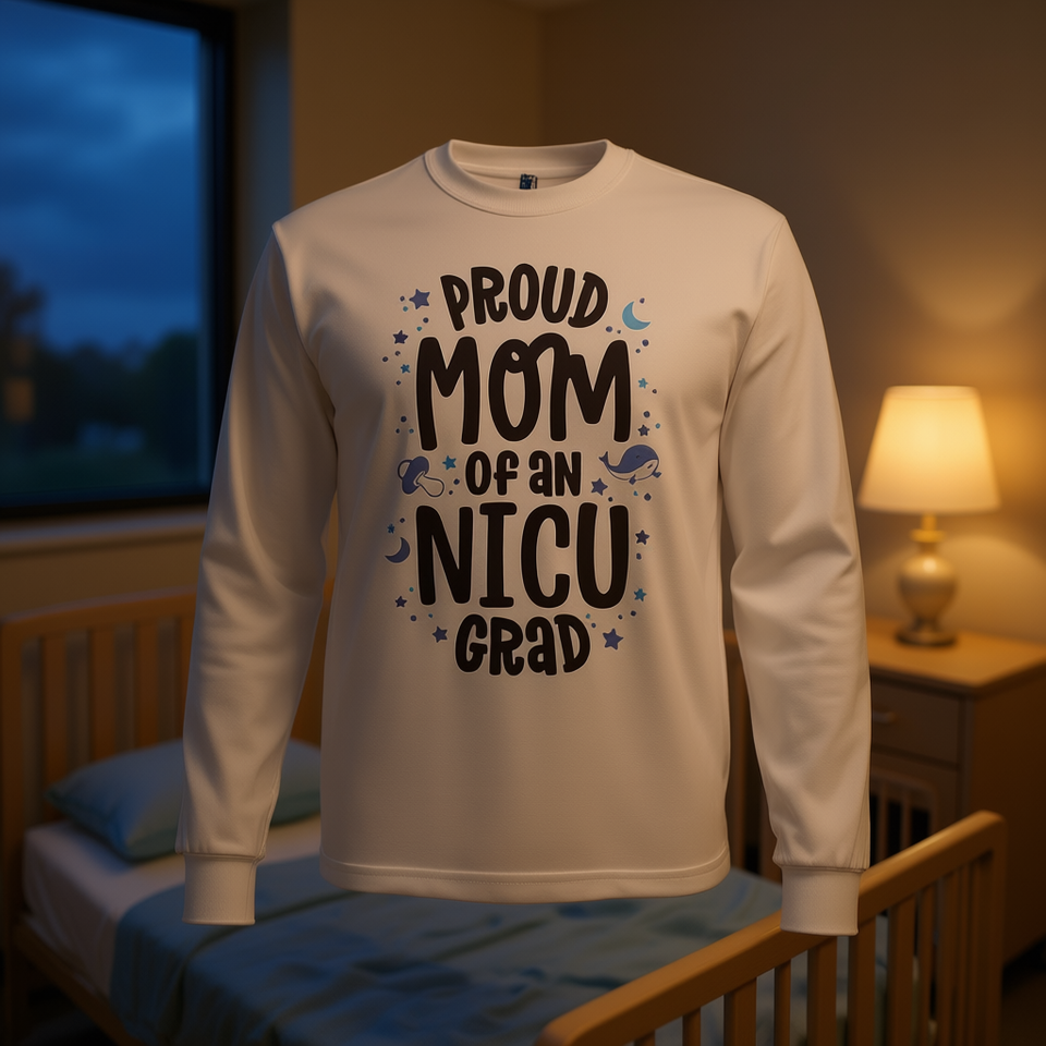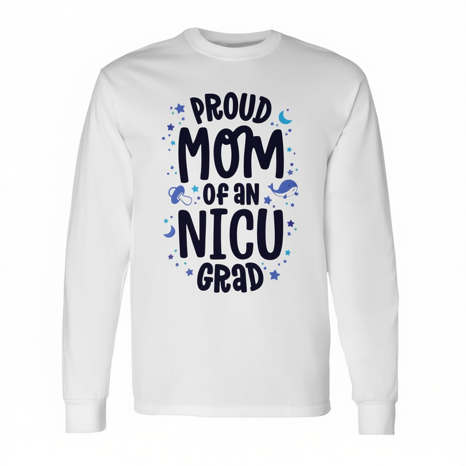 Orgogliosa mamma di un bambino uscito dall'Unità di Terapia Intensiva, maglietta a maniche lunghe per genitori e madri