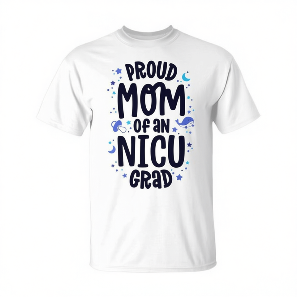 T-shirt con stampa digitale a maniche corte con scollo rotondo per adulti, con stampa digitale, per le mamme orgogliose di un bambino uscito dal reparto di terapia intensiva