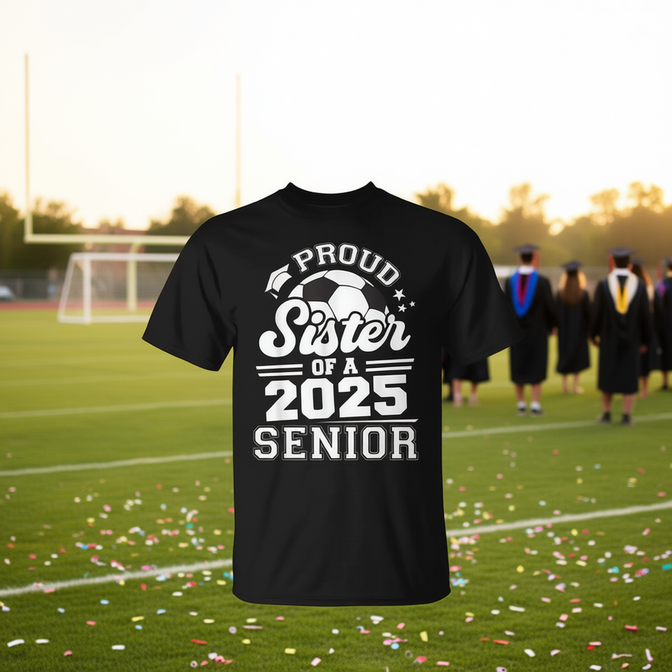 Maglietta Promozionale con Pallone da Calcio per Sorella Orgogliosa del Laureato 2025, Design Personalizzato per la Cerimonia di Diploma 2025