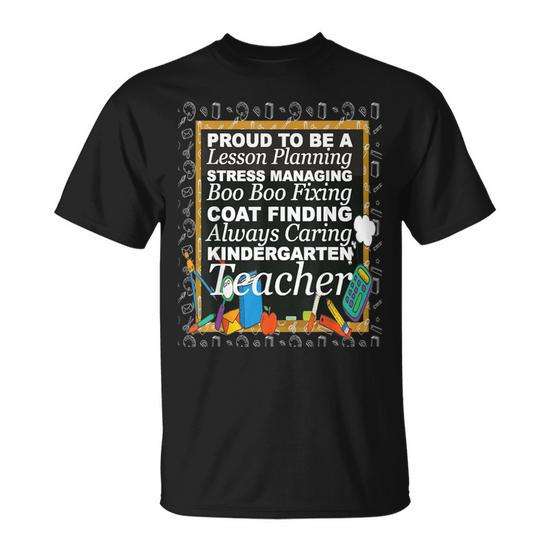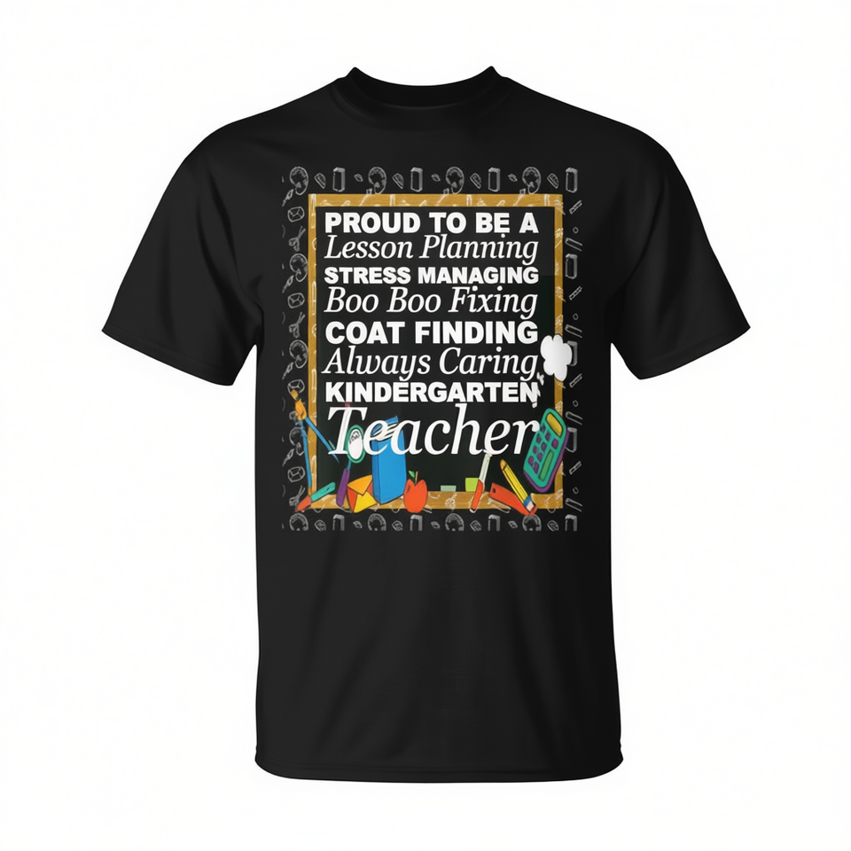 T-shirt con stampa digitale unisex a maniche corte e girocollo con stampa digitale, con scritta “Proud To Be A Kindergarten Teacher”, per il ritorno a scuola e la laurea