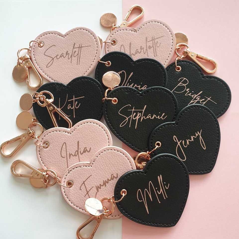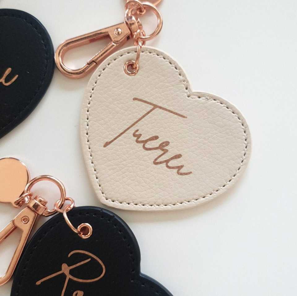 Portachiavi in PU Personalizzati Regali di Nozze Accessori per Borse Anelli per Chiavi Auto a Forma di Cuore con Logo Inciso al Laser o Stampato Simpatici Portachiavi in Pelle