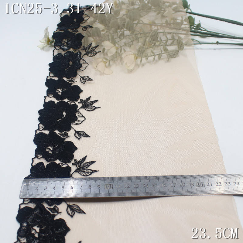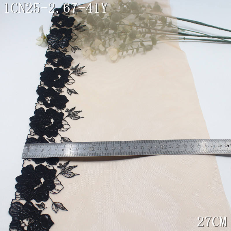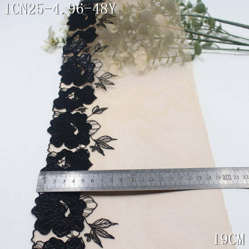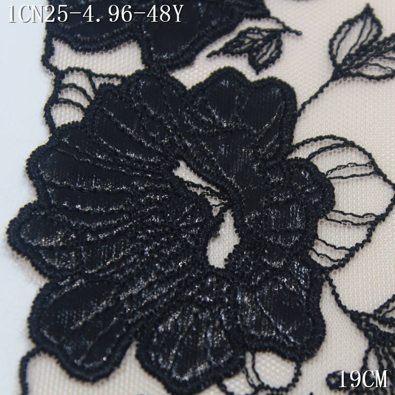 Tessuto di pizzo ricamato a maglia floreale in pelle verniciata nera per abito Lingerie 19cm di qualità morbida Nude nette ricamate