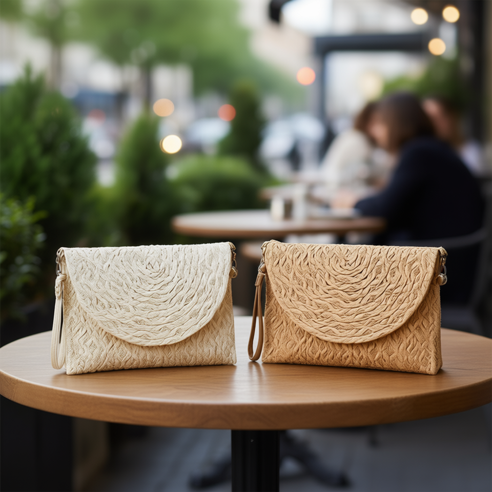 Borsa in tessuto PU 28x20 cm con patta in filo dorato, stile lungo/corto BOLSO