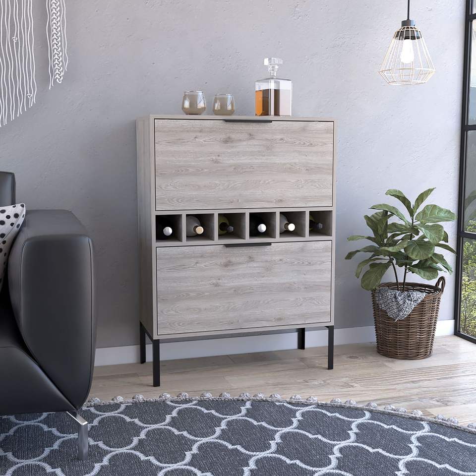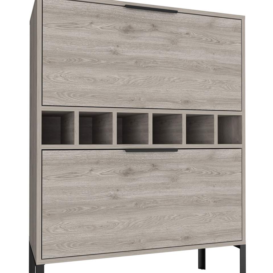 Mobile bar Puertu grigio chiaro a doppia anta con sei scomparti per bottiglie