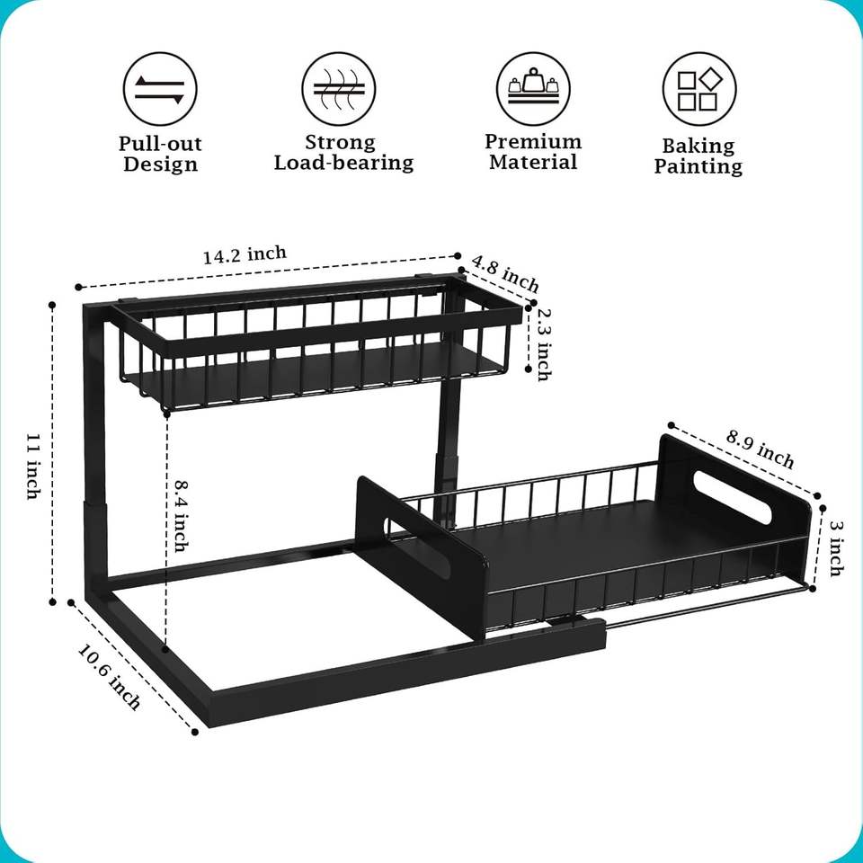 Organizzatore Estraibile per Armadietto Sottolavello, Ripiano Scorrevole per Cucina e Bagno, Scaffali per Stoccaggio in Cucina