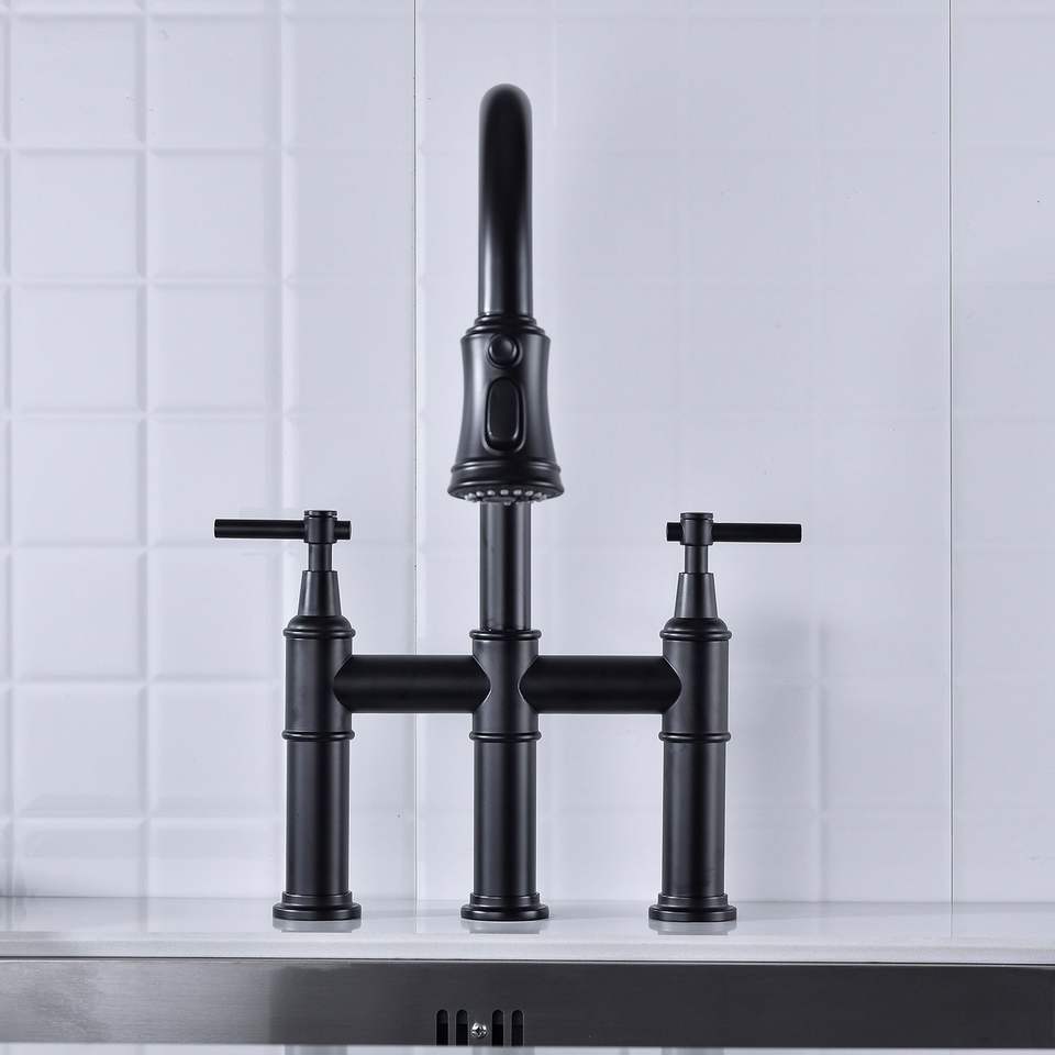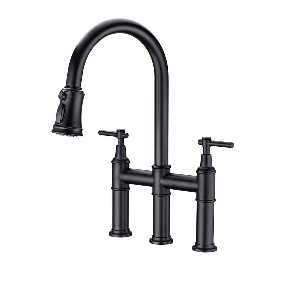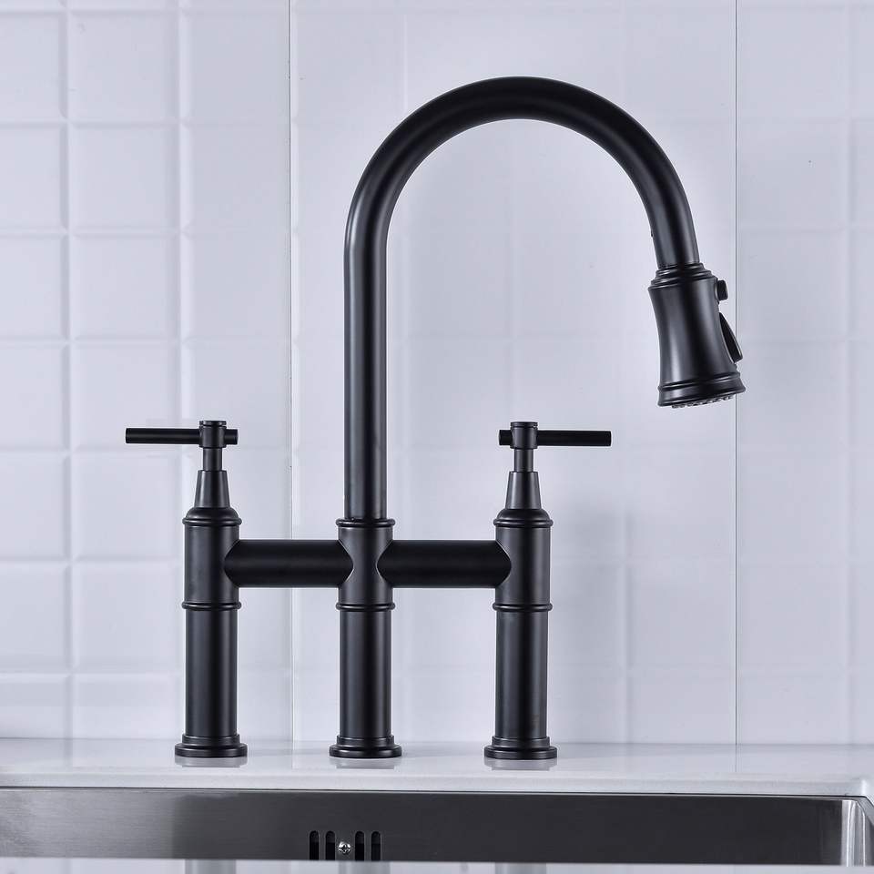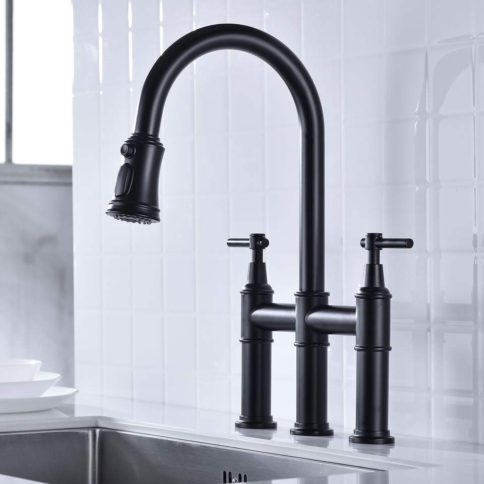 Rubinetto da cucina a ponte con doccetta estraibile e finitura satinata