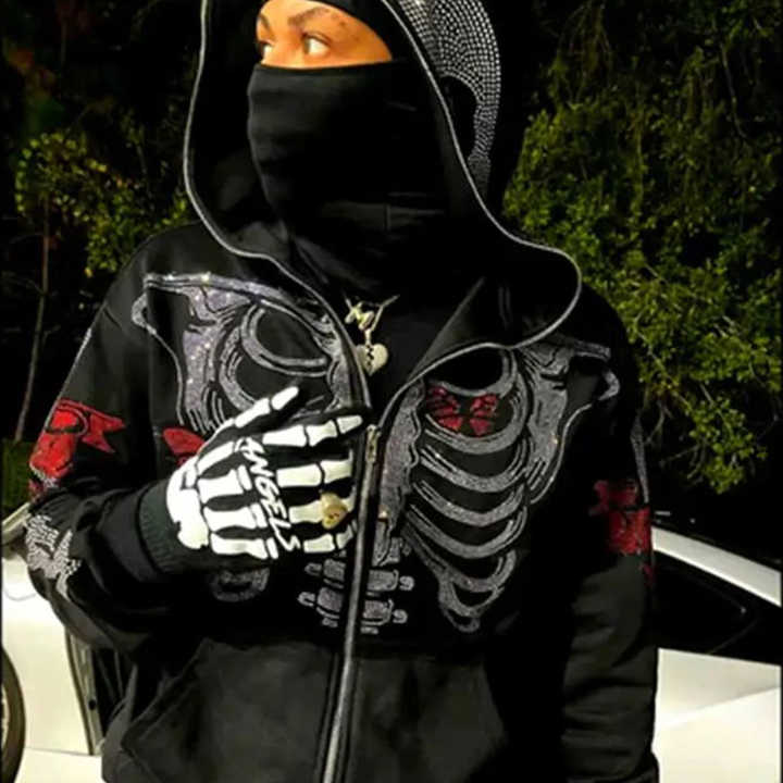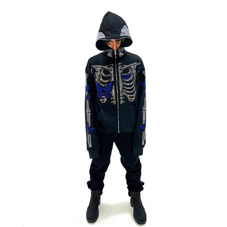 Pullover Hoodies Heavyweight Streetwear Rhinestone Butterfly Skeleton Print Factory Men's Oversized Zip up Hoodie Sweatshirts