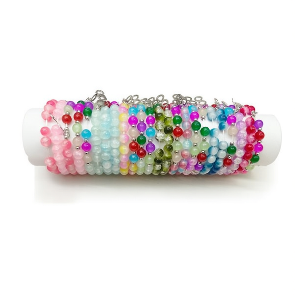 Bracciale in Vetro con Ciondolo a Otto Caratteri Pulsara Tubo, 24 Pezzi, Bracciali di Moda Fatti a Mano in Acciaio Inossidabile con Perline