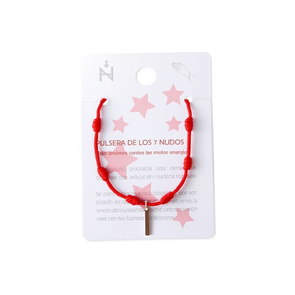 Braccialetto con 7 nodi in acciaio inossidabile e filo rosso fatto a mano per protezione