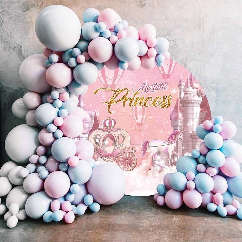 Carrozza di zucca sfondo elastico In Stock unicorno principessa castello reale mongolfiere fotografia sfondo