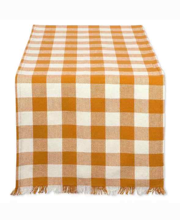 Pumpkin Spice Heavyweight Check Fringed Table Runner 14" X 108" | Design Imports