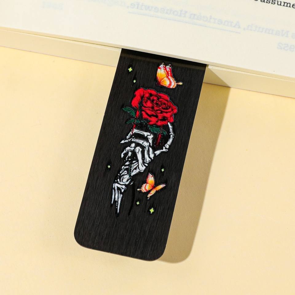 Segnalibro Punk con Teschio e Rosa, Creativo, in Acciaio Inossidabile Nero, per Lettura e Messaggi, Stile Culturale
