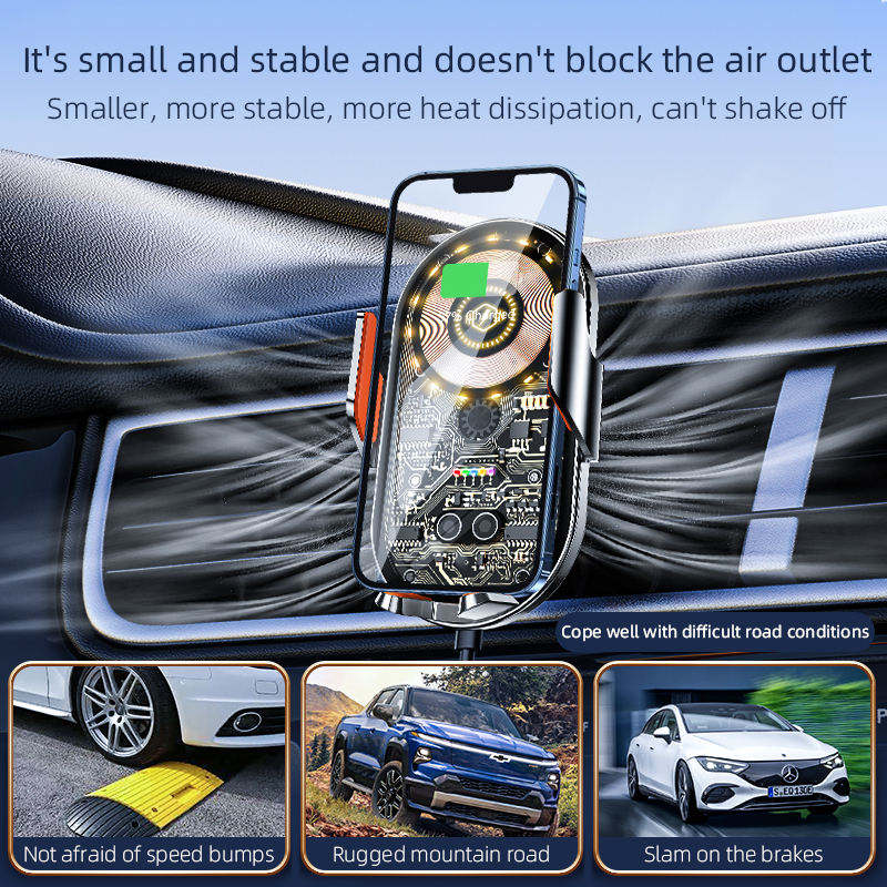 Supporto per Telefono da Auto Stile Punk con Caricatore Wireless Ricaricabile e Supporto per Navigazione per Bocchetta dell'Aria dell'Auto