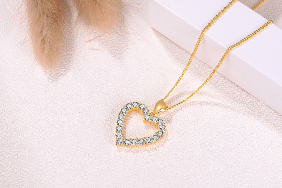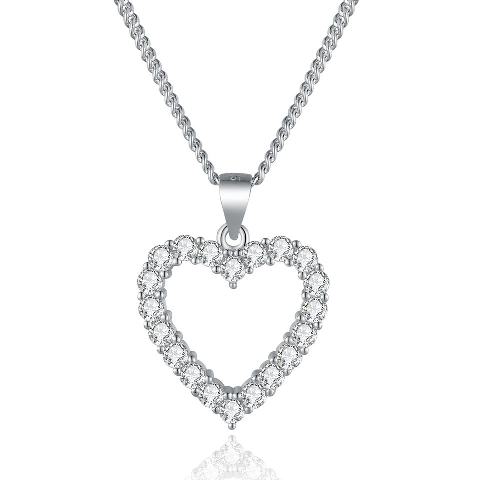 Pure 925 Silver Big Pendant with Rhodium Plated Silver Heart Charm Pendant Necklace