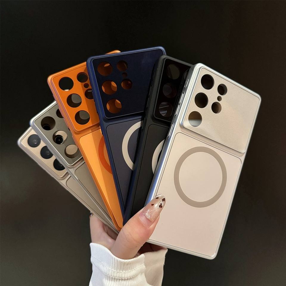 Custodia Magnetica Opaca Effetto Pelle Colore Puro per Samsung Galaxy S26 Ultra S25 S24 Cover Posteriore Rigida