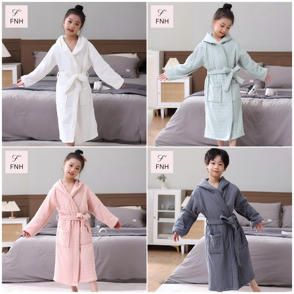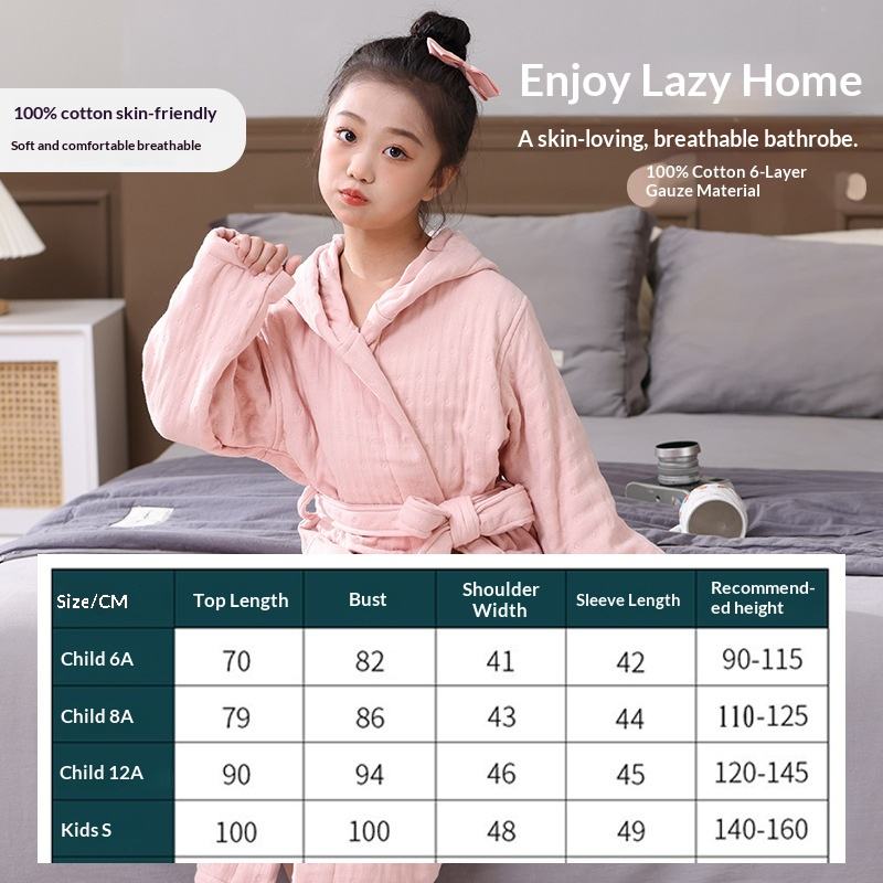 Accappatoio con Cappuccio in Puro Cotone per Bambini, Sei Strati Spessi in Spugna, Assorbente e Morbido, Pigiama Invernale per Ragazzi e Ragazze