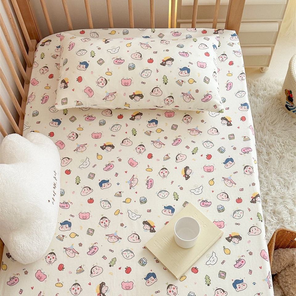 Pure Cotton Double Layer Gauze Baby Bed Sheet & Mattress Protector Spring Summer Cartoon Newborn Spliced Design
