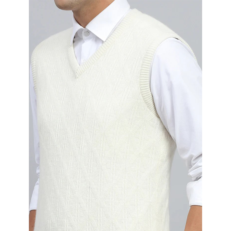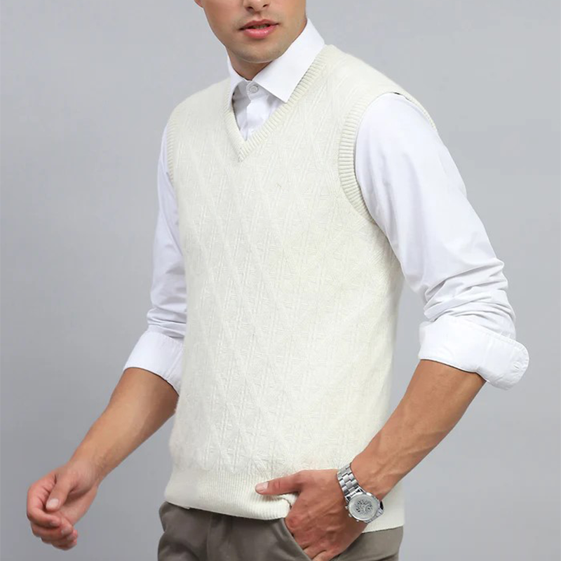 Gilet da uomo in puro cotone bianco avorio con motivo solido geometrico maglia gilet stile Preppy