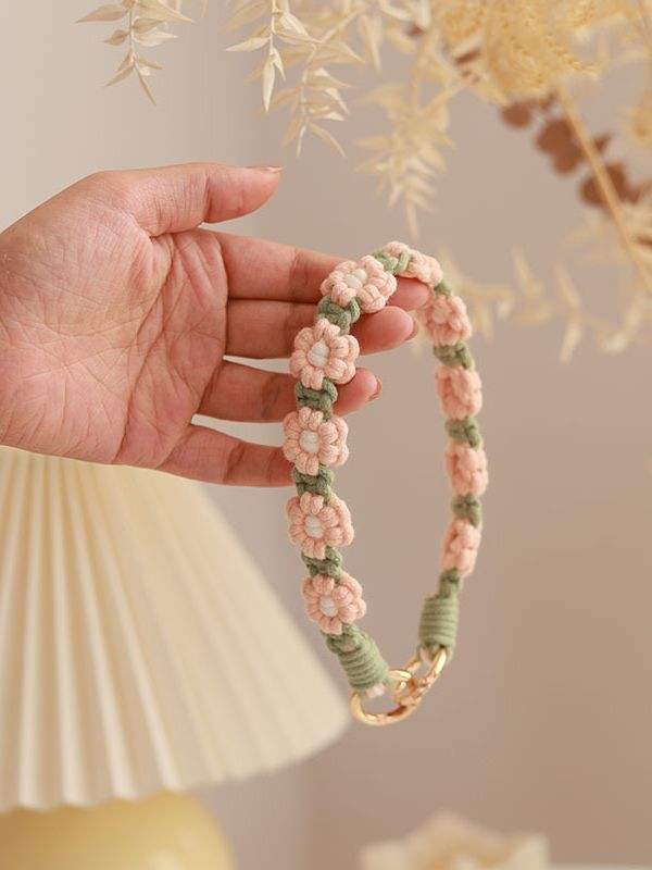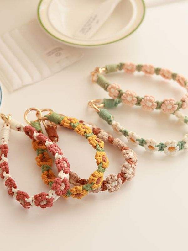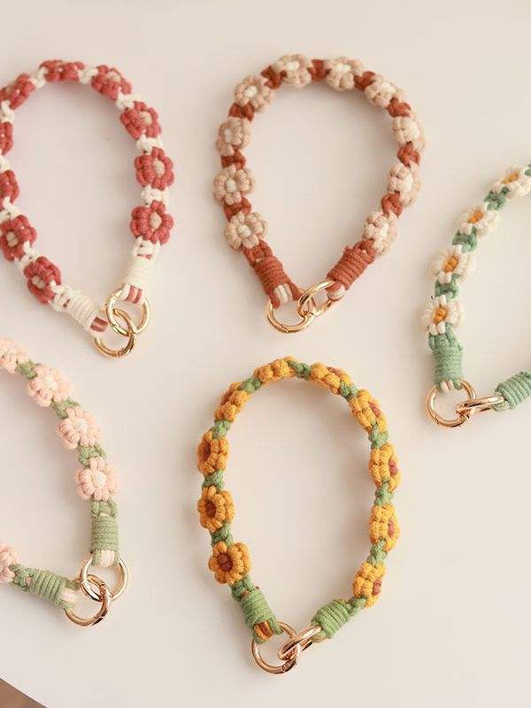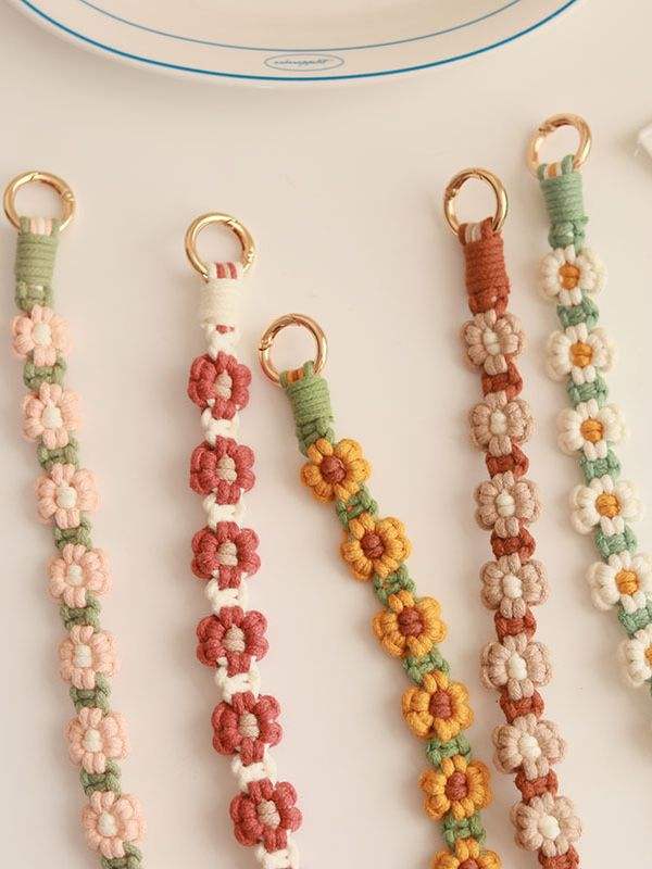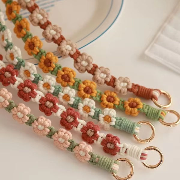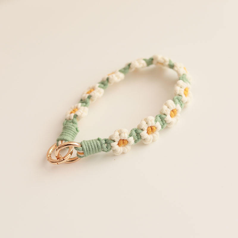 Cinturino da Polso Intrecciato a Mano Puro Bonie Brand 30cm con Design a Fiori Margherita, Catena per Cellulare, Portachiavi a Doppia Testa, Cordino