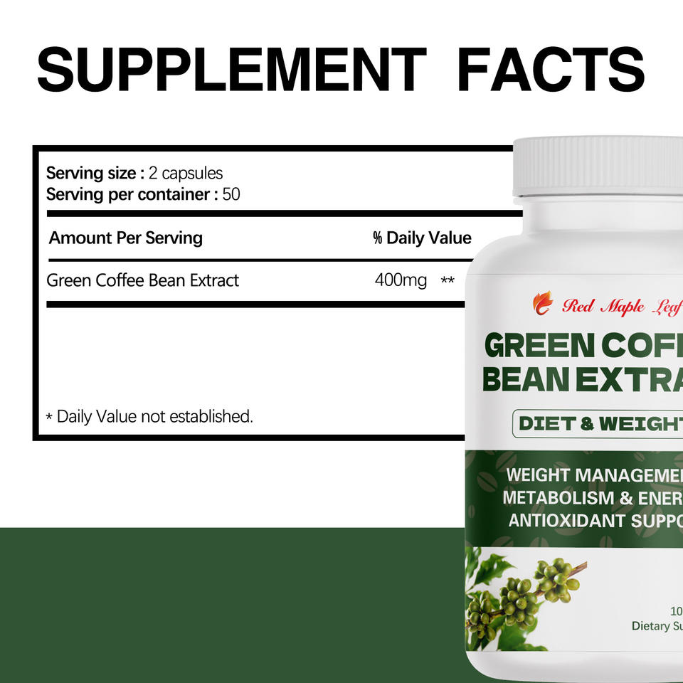 Green Coffee Bean Extract Capsules | Supports Metabolism Energy & Weight Management | Dietary Supplement 100 Capsules
