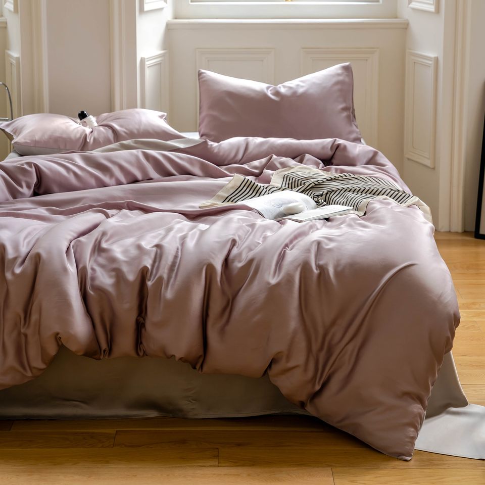 Pure Solid Color 100% Lyocell 4 Pieces Bedsheet Bedding Set King Queen Size Silk Flatsheet Duvet Cover