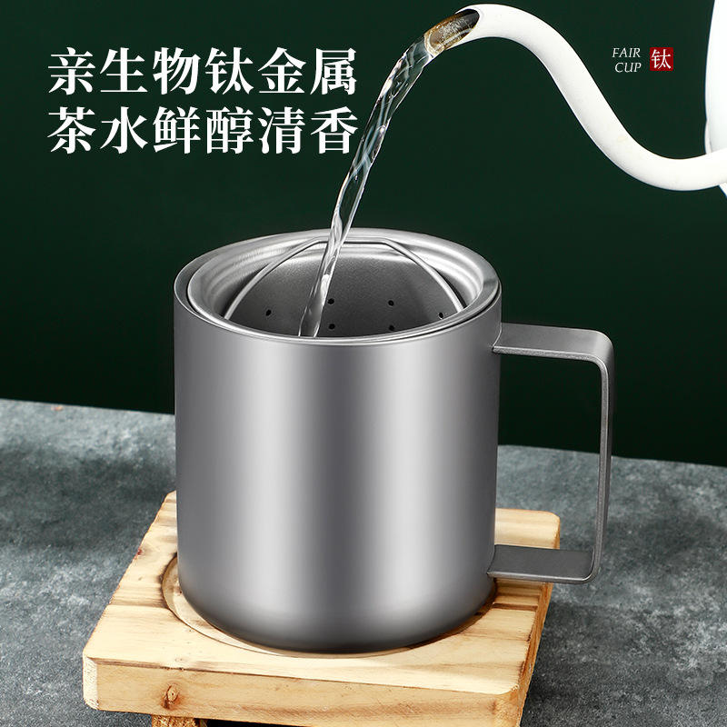 Tazza Termica in Titanio Puro a Doppio Strato con Coperchio Filtrante Antiscottatura, Resistente alle Cadute, per Studenti, Caffè e Tè