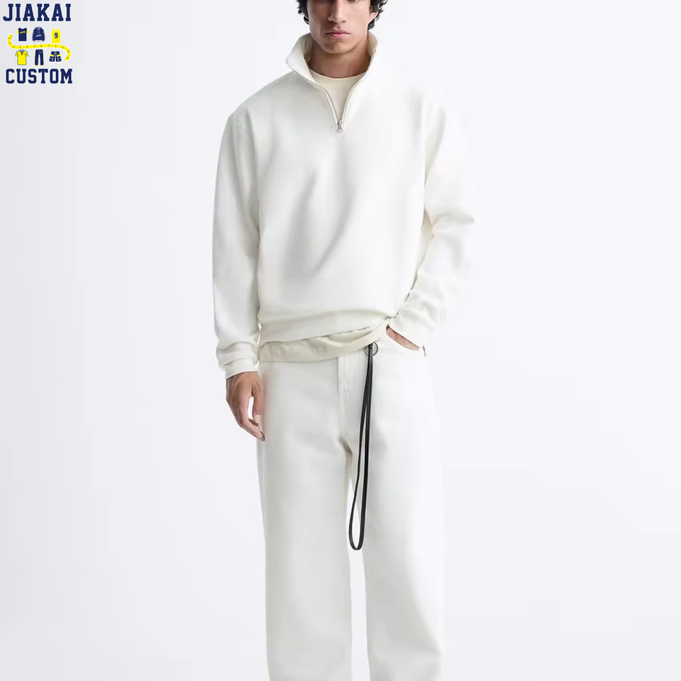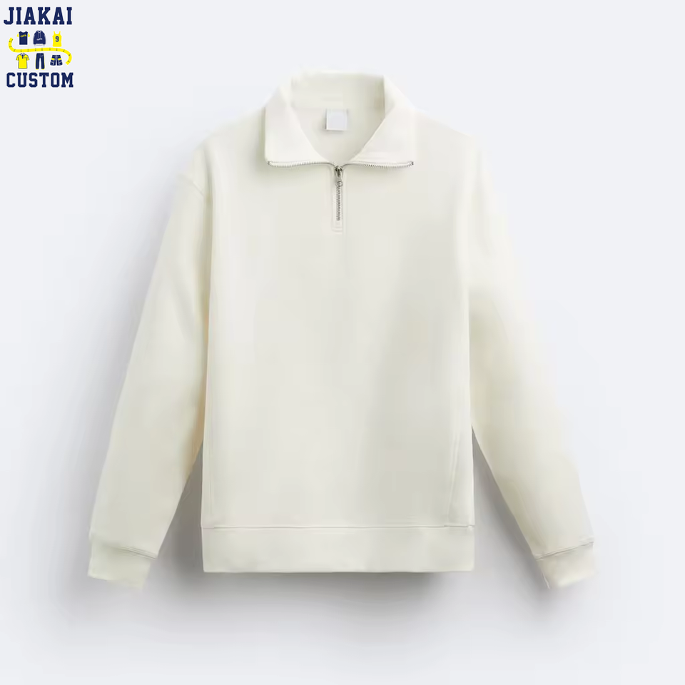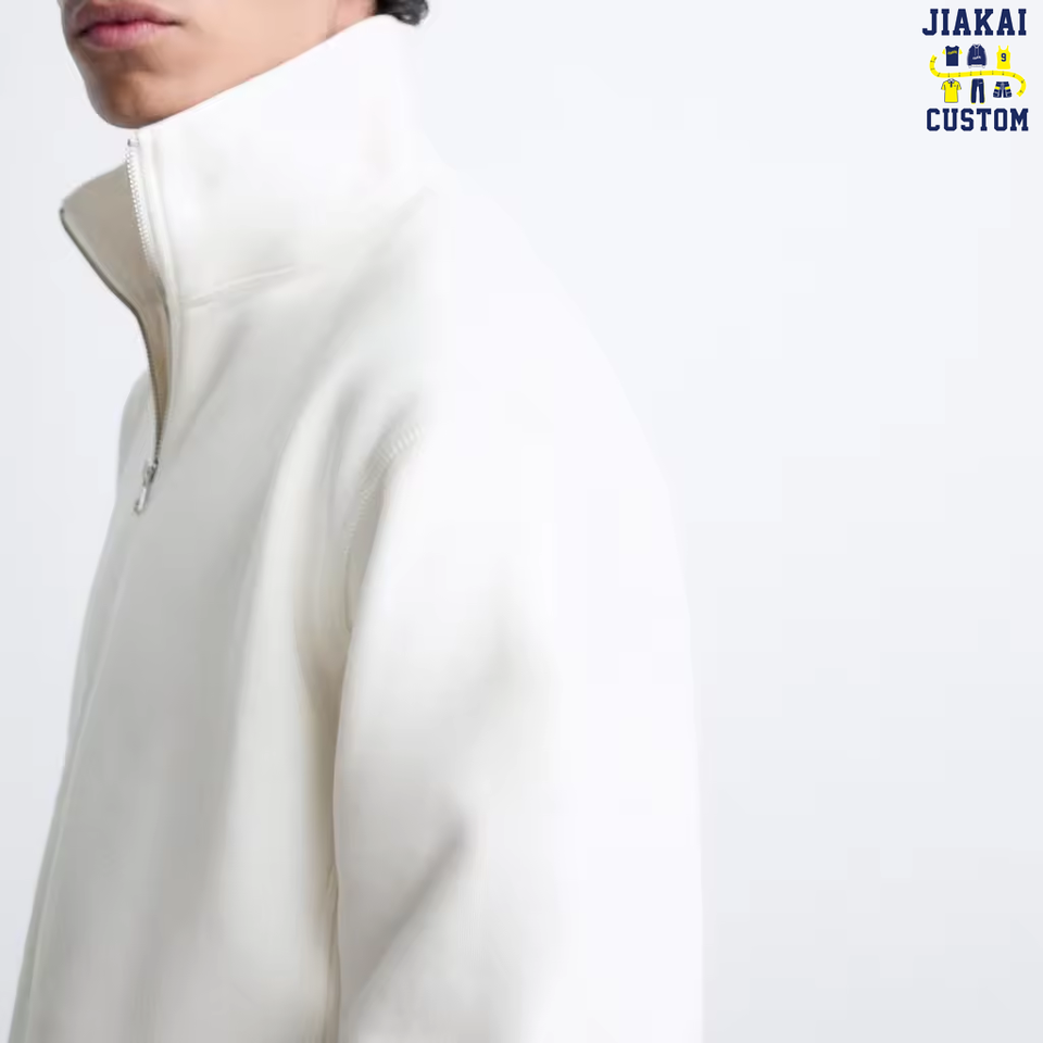 Felpa Pesante Bianco Puro Personalizzata con Mezza Cerniera e Collo a Choker, 280gsm 100% Cotone, Vestibilità Ampia, Antivento, Stile Streetwear