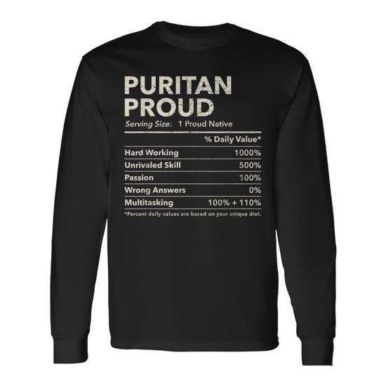 T-shirt a maniche lunghe Puritan Proud Nutrition Facts con design Ohio Proud