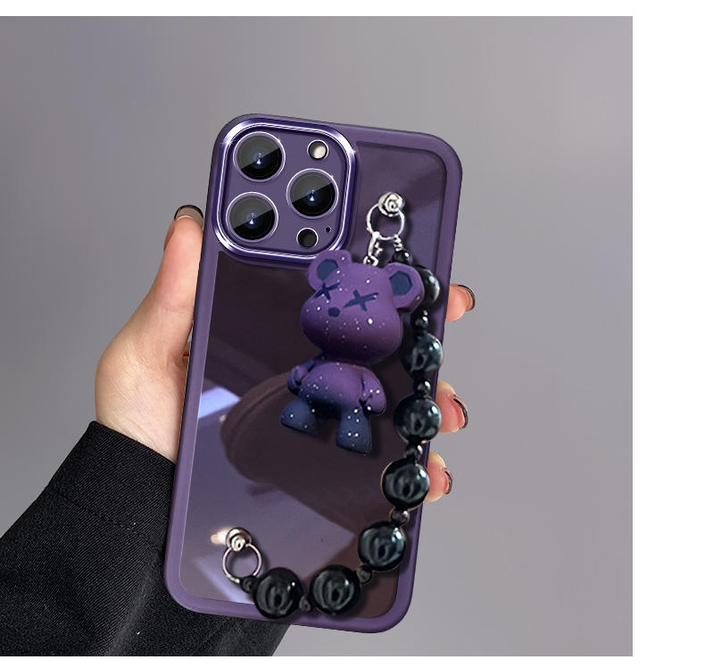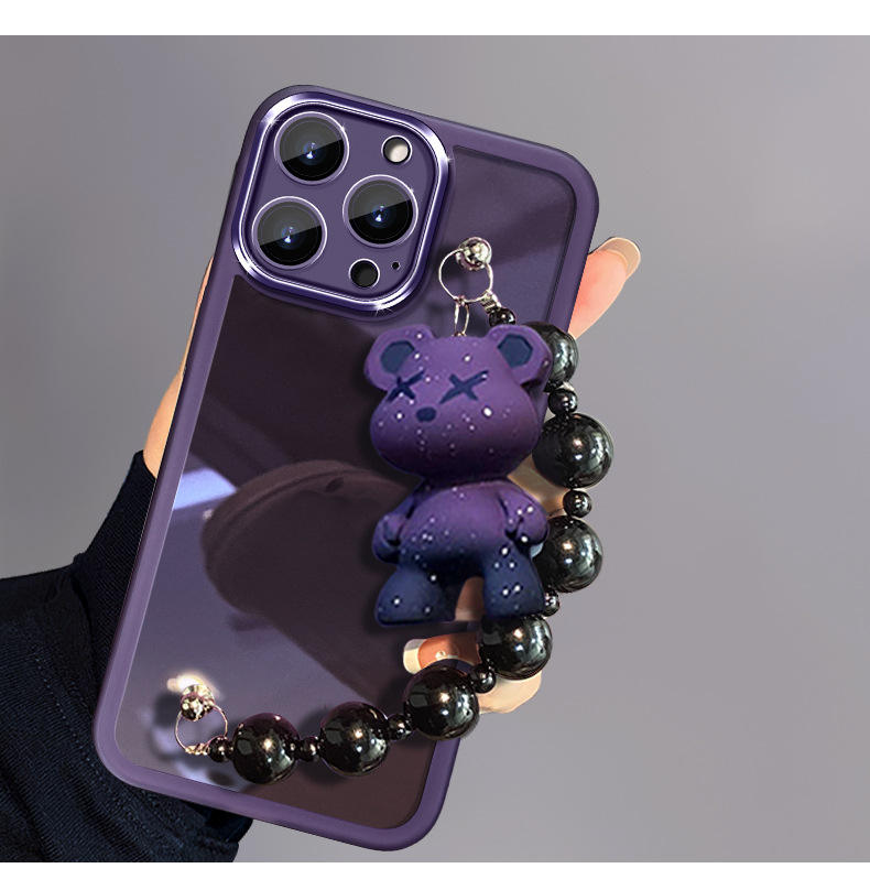 Purple 3D Bear Bracelet Silicone Transparent Phone Case Cover for iPhone 17 16 15 14 13 12 11 Pro Max Plus