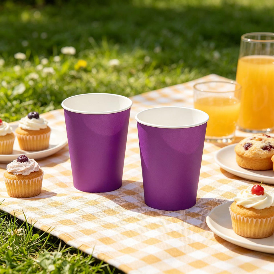 Bicchieri di carta viola Party Love da 270cc, eleganti stoviglie per feste e decorazioni di compleanno