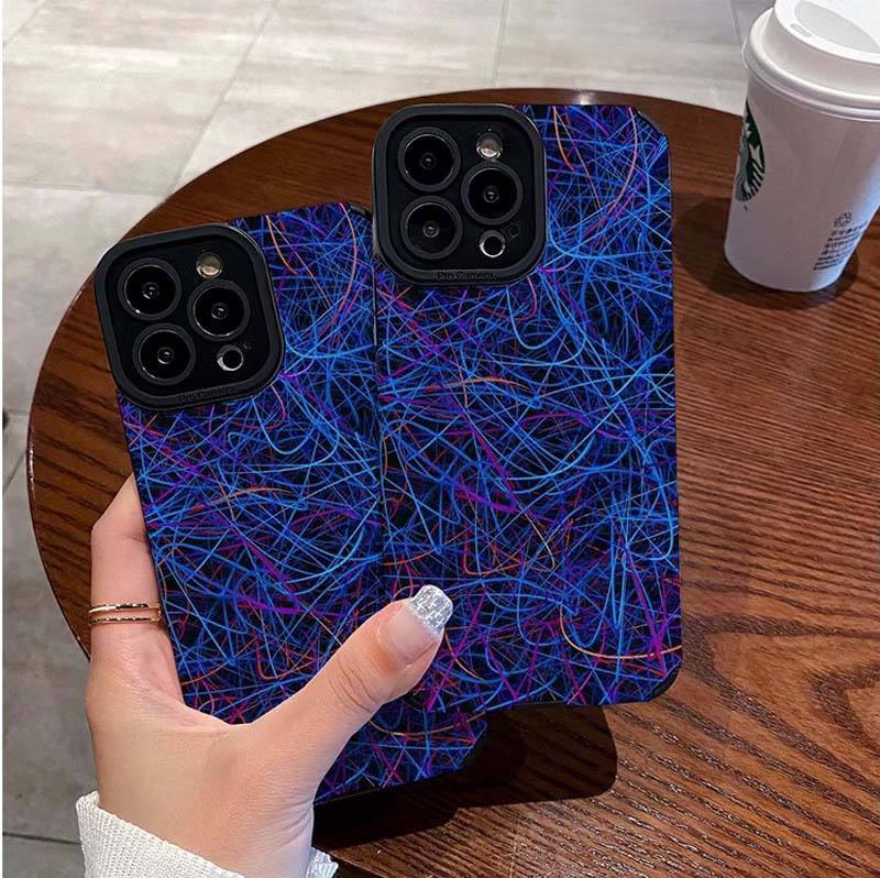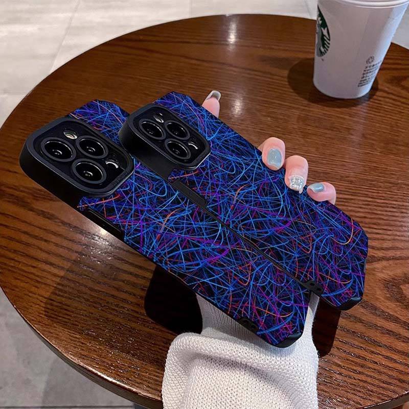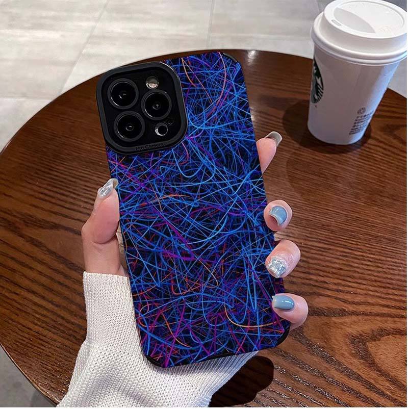 Viola blu giallo stampa linea TPU pelle artificiale Cover per Iphone X Xr Xs 11 12 13 14 15 16 17 Pro Max