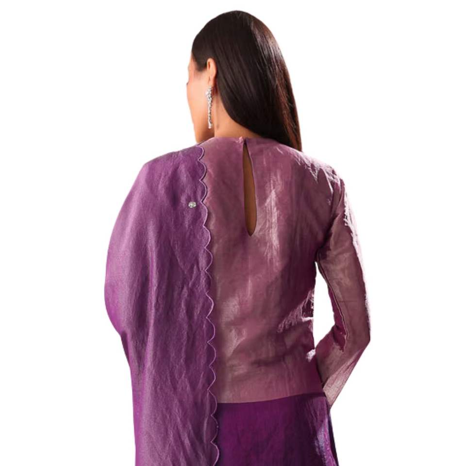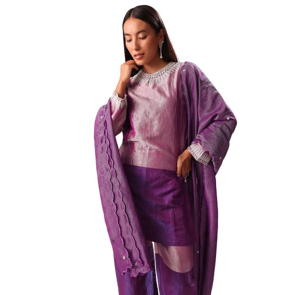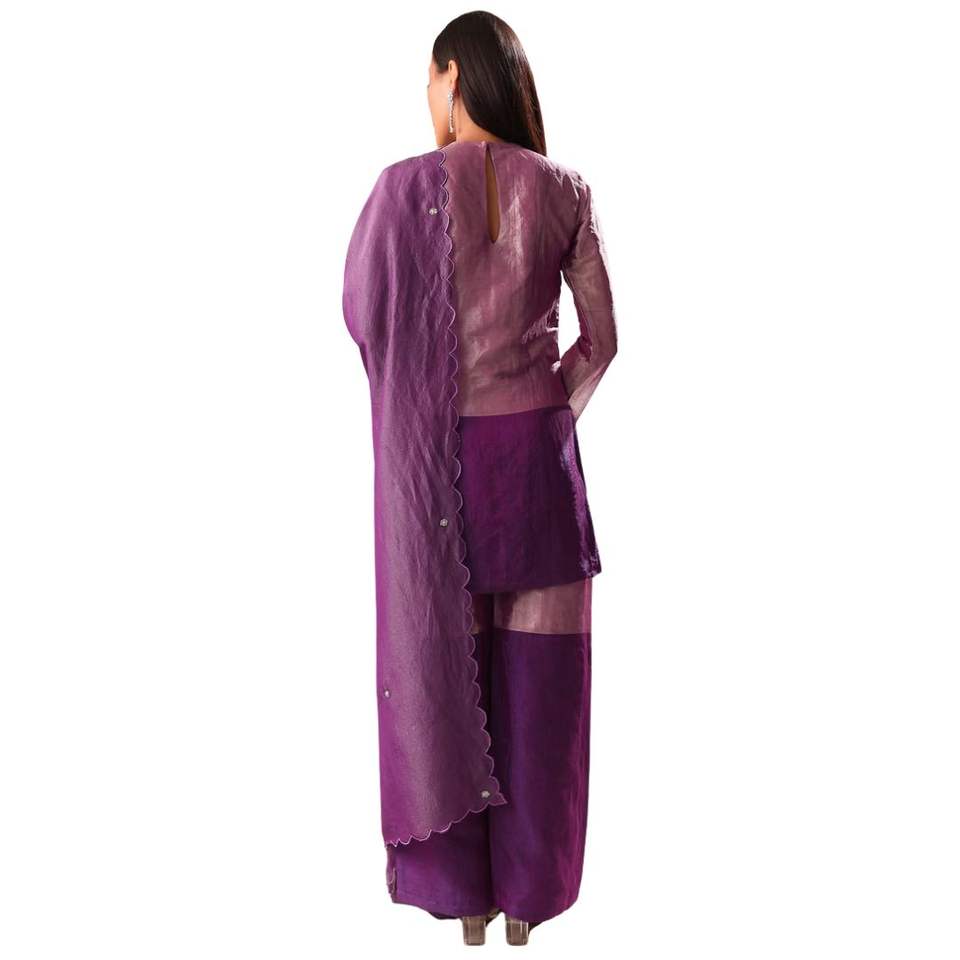 Purple Embroidered Kurta Palazzo Set Suit Wholesale Women Ethnic Apparel OEM Clothing Factory Supplier Custom Party Outfit