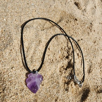 Purple Natural Amethyst Pendant Necklace for Men and Women Fashion String Knot Design