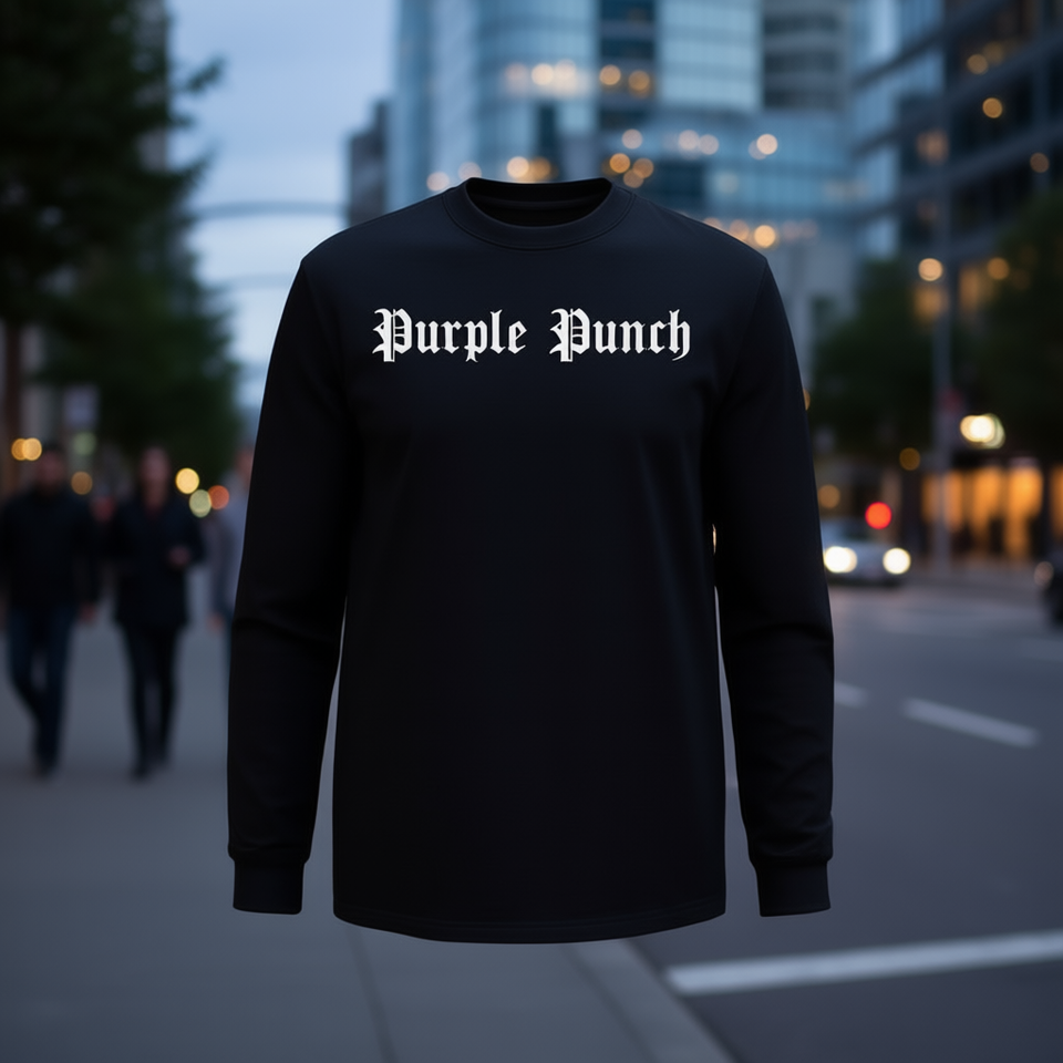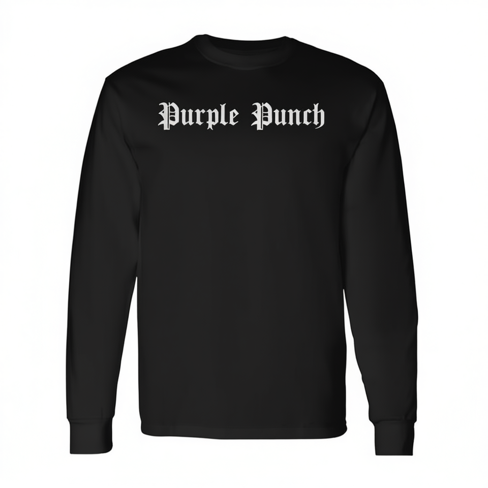 T-shirt a maniche lunghe Purple Punch in cotone nero, abbigliamento unisex