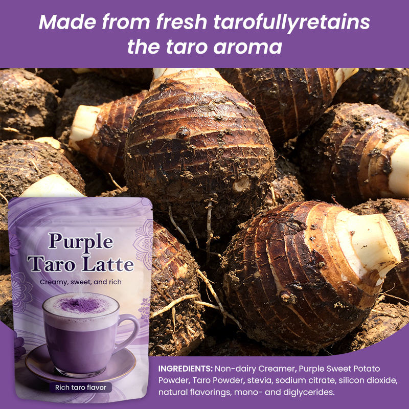 Main Ingredient:Non-dairy Creamer,Purple Sweet Potato Powder, Taro Powder,stevia, sodium citrate, silicon dioxide, natural flavorings, mono- and diglycerides
