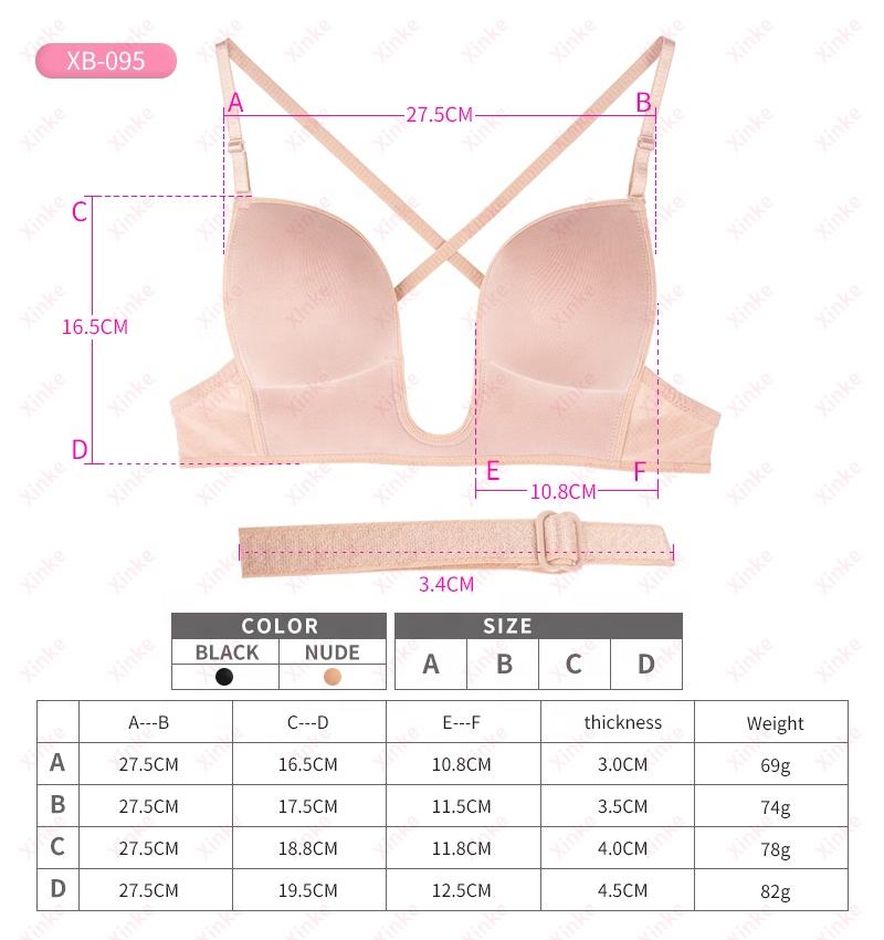 Push up cinturino trasparente a forma di U reggiseno senza schienale del corpo biancheria intima per le donne del partito