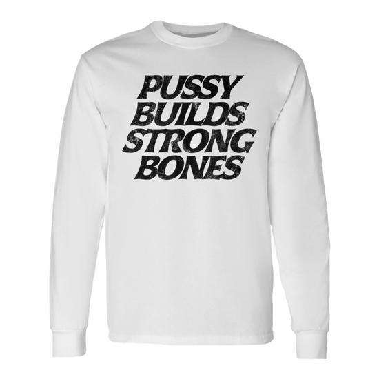 T-shirt a maniche lunghe Pussy Builds Strong Bones, girocollo unisex, abbigliamento promozionale per adulti